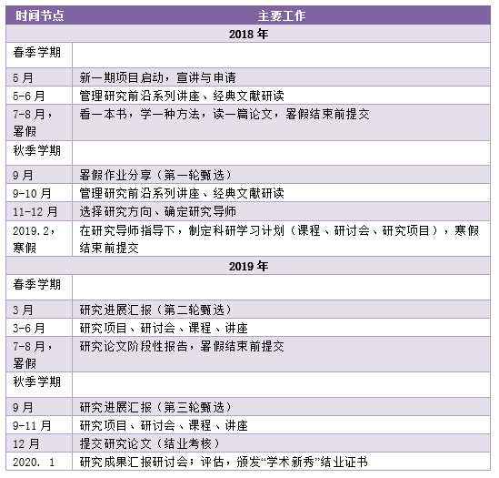 学术新秀班培养过程一览表